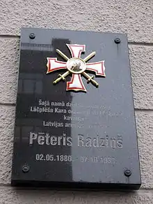 Памятная доска на доме, где жил кавалер ордена Петерис Радзиньш