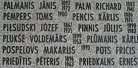 Фрагмент доски с именами кавалеров ордена Лачплесиса в часовне на Братском кладбище в Риге