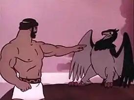 ![]() Кадр из мультфильма. Геракл и орёл Зевса | |