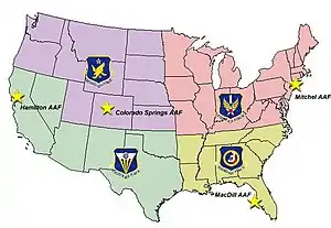 | Восточный район ПВО | ![]() | Стюарт, Нью-Йорк | Командование ПВО США | Контроль зоны ПВО восточной части США в 1949—1960 гг. |