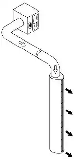 Под бескорпусными завесами подразумевается использование раздельных элементов, а именно: отдельно корпуса раздачи воздуха и отдельно напорного вентиляционного блока с нагревателем. Такая схема часто применяется для запыленных, загрязненных помещений (лакокрасочные цеха и т.д.), в помещениях с повышенным классом защиты к оборудованию, для помещений с повышенным требованиями к пожаробезопасности либо же взрывобезопасности, а также где по техническим причинам нет возможности разместить полноценную воздушную завесу непосредственно в помещении и т.д.