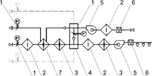 Оборудование для воздушного отопления может быть двух типов — канальное и локальное[3]. Локальное оборудование устанавливается непосредственно в отапливаемой зоне (локальные воздухонагреватели). Канальное оборудование передаёт тепло в контролируемую зону через воздухораспределительную систему, собранную из воздуховодов. В совокупности это представляет собой централизованную систему для обработки воздуха. Она может обрабатывать полностью рециркуляционный воздух, подавая и забирая его из помещений для доведения до нужной температуры, смешанный — частично подмешивая воздух с улицы к рециркуляционному, или полностью уличный воздух. Центральная система воздушного отопления может подразделяться на зоны.[4], то есть группы помещений или отдельные помещения с индивидуальным контролем температурного режима. В каждой такой зоне устанавливается свой датчик температуры или отдельный блок управления с датчиком температуры для анализа текущего значения и подачи соответствующей команды основному оборудованию и исполнительным устройствам, распределяющим воздушные потоки. Непосредственное управление контролируемым параметром, то есть температурой воздуха, позволяет затрачивать на отопление только такое количество энергоносителя, которое необходимо в данный момент времени.