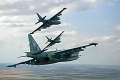 Су-25М1К — принят на вооружение в 2015 году[17]; Су-25М1 — принят на вооружение в 2010 году[17]. 2 самолёта переданы воздушным силам в 2009 году, 2 — в 2011 году, 5 — в 2014 году[18], часть самолётов была модифицирована до данной модификации в 2015 году[19]; | ||
