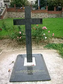 Во дворе храма установлен чёрный мраморный крест в память о погибших в ходе бомбардировки 1941 года[3].