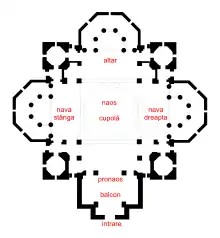 Храм построен по проекту Виктора Влада, выпускника Политехнического университета Тимишоары, в виде равностороннего греческого креста. Иконостас был сооружён мастером Траяном Боблетеком из Назны, а иконы для него написал Вирджил Симионеску. Стены собора расписывал Аурел Чупе. Фрески были завершены художником Николае Стойкой в 1970—1986 годах[2].