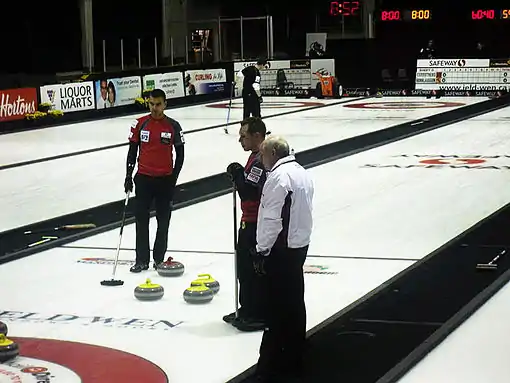 | Мэтт Возняк, Би Джей Ньюфелд и Крис Ньюфелд на чемпионате провинции Манитоба среди мужчин 2010 (2010 Safeway Championship) | |