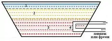 3 — слой крутого рассола; 4 — теплообменник.