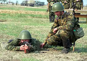 - Нестроевые[15] — не назначенные для строя (ранее, военные чины, не для бою: денщики, мастеровые, погонщики, прислужники, писаря, обозные, врачи, чиновники и прочие)[14]. Также назывались Нефронтовые — не назначенные для фронта, для боевого, линейного войска. Нестроевые (Нефронтовые) чины — военные чины, по роду своей службы, не принадлежащий к строю (фронту).