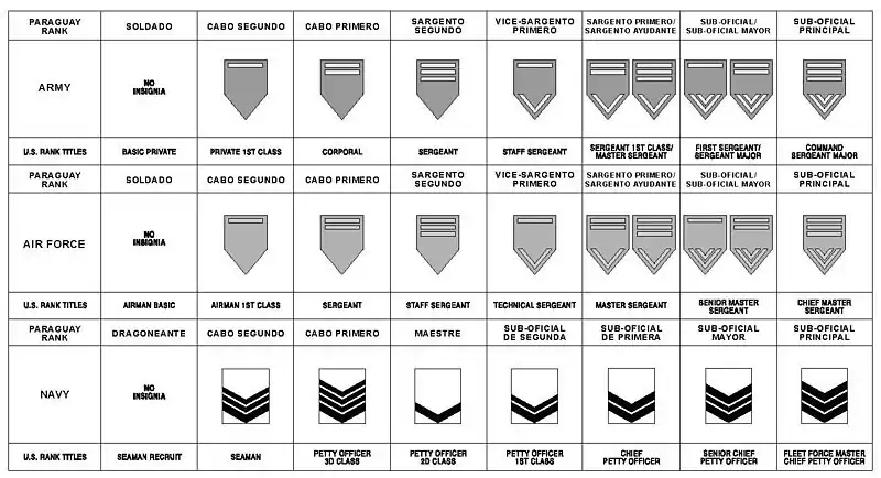 Воинские звания вооружённых сил Парагвая имеют структуру, сходную с другими испаноязычными странами — бывшими колониями Испании.