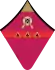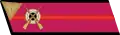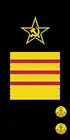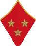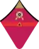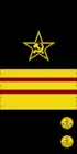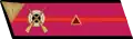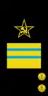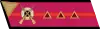 - на рукавах — большая золотая звезда, окаймлённая красным кантом, и угольник золотого шитья, на красном просвете которого две золотые лавровые ветви.