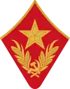 - на петлицах ромбовидной формы вышивались большая золотая звезда, две лавровые ветви и эмблема — серп и молот,