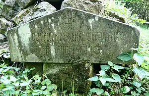 На кладбище располагается оригинальная каменная информационная табличка с надписью на немецком языке: