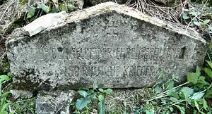 На кладбище располагается оригинальная каменная информационная табличка с надписью на немецком и польском языках: