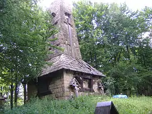высотой около 50 сантиметров. На кладбище восстановлены два надмогильных креста, на которых прибиты таблички с цифрой «1915».