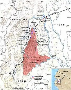 ![]() Расположение эквадорских и перуанских аванпостов в долине Сенепа накануне конфликта, январь 1995 года | |||