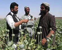 - Известно заявление Р. Холбрука о том, что с учётом роста безработицы уничтожение афганских маковых плантаций не только бесполезно и неэффективно, но и контрпродуктивно, поскольку афганские крестьяне могут перейти на сторону талибов .