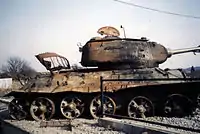 ЮНА была мощной силой, имеющей 2000 танков (в основном, советские Т-54/55) и 300 боевых реактивных самолётов (советские МиГ-21). Однако к 1991 году большинство этого вооружения устарело[101]. Помимо советского вооружения, ЮНА эксплуатировала и вооружение югославского производства, в том числе танки М-84 и штурмовики СОКО Г-4 Супер Галеб и СОКО J-22 Орао, оснащённые управляемыми ракетами AGM-65 Maverick[102]. Также имелись на вооружении противотанковый комплекс «Конкурс» и зенитный комплекс «Стрела-3».