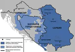 Весной 1992 года началась война в Боснии и Герцеговине, и регулярная хорватская армия и добровольческие подразделения активно перебрасывались в Боснию[200]. Хорватские силы размещались на территориях со значительным процентом хорватского населения и принимали широкое участие в боевых действиях против боснийских сербов и югославской армии, наиболее известным примером стало участие в боях в Посавине, в Западной Боснии (Купрес), а также в Герцеговине. Хорватский Генштаб активно помогал создавать боснийским хорватам свои вооружённые структуры. По мнению российского исследователя Ионова, Генштаб армии боснийских хорватов попросту стал «филиалом» Генштаба Хорватии[201].