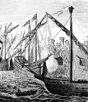 ![]() Ганзейские корабли атакуют Копенгаген, 1428 год. | |||