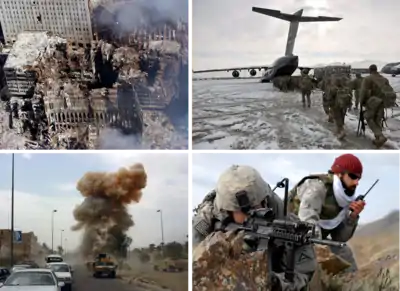 После отказа талибов выдать Усаму бен Ладена и других руководителей «аль-Каиды» американскому правосудию, властями США было принято решение о проведении военной операции на территории этой страны с целью ликвидации структур «аль-Каиды» и «Талибана». Была сформирована многонациональная коалиция, главенствующую роль в которой занимали США и 7 октября 2001 года была начата вооружённая операция против режима талибов на территории Афганистана. Уже до конца 2001 года силами международной коалиции режим талибов был свергнут практически на всей территории Афганистана. Однако, затем «Талибан» перешёл к тактике партизанской и террористической борьбы против сил международной коалиции и нового афганского правительства. Это привело к тому, что противостояние с талибами превратилось в затянувший на многие годы вооружённый конфликт, который продолжался до 2014 года.