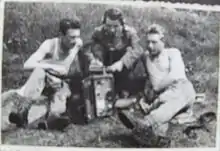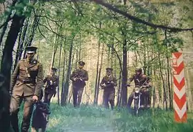 ![]() Воины ВОП возле погранстолба № 158 на границе с ГДР. Участок заставы ВОП в Пеньске, Лужицкая бригада ВОП. | |