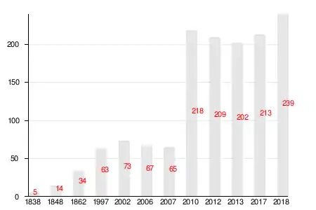 | 1838 | 1848 | 1862 | 1997 | 2006[28] | 2007[29] | 2010[30] |
