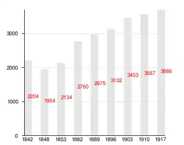 Изменение численности населения прихода Инкере с 1842 по 1917 год[14]: