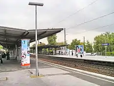 Платформа 1-2 ежечасно принимает региональные экспрессы RE 1 и RE 5, а платформа 3-4 — пригородные электропоезда S 1 и S 68 с 20-минутным тактом. Скорые поезда проходят у платформы 1-2 со скоростью до 200 км/час. Обе платформы частично покрыты навесами.