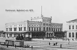 Железнодорожное сообщение в Дортмунде было открыто 15 мая 1847 года. В этот день была открыта станция железнодорожного участка Кёльн-Минден. Здание вокзала представляло собой массивное замкоподобное здание в северной части старого города. Это здание вокзала просуществовало более 60 лет.