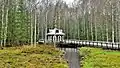 Панорама Истока Волги. Часовня и деревянные мостки