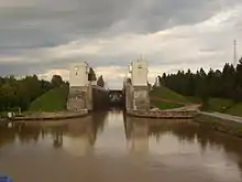 - Нижне-Свирский. Шлюз (напор 11,0 м; 17,30 м над уровнем моря; камера 198 × 21,5 м);