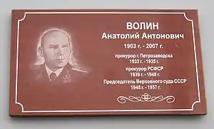 В 2010 году на здании Прокуратуры Республики Карелия была установлена мемориальная доска в память о работе А. А. Волина в Петрозаводской городской прокуратуре[6].