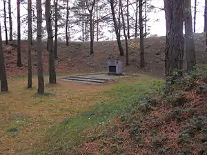 ![]() Мемориальный знак в урочище Пороховня в память убитых евреев Волковысского района | |