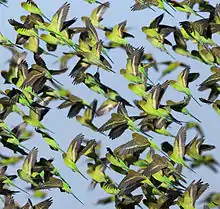 Полёт волнистого попугайчика немного дугообразный и напоминает полёт ласточки. При посадке крылья сгибаются вниз, делая её похожей на посадку перепела.