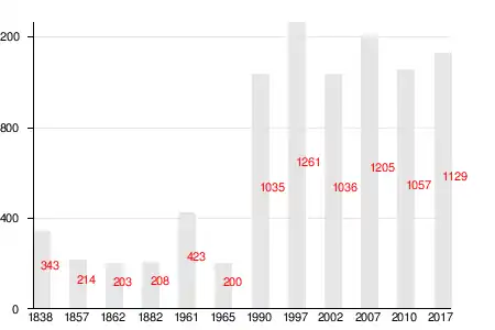 | 1838 | 1862 | 1961 | 1965 | 1990 | 1997 | 2007[21] |