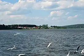 Пруд был очень большой — 12 верст в длину до Воложки и в ширину тоже несколько верст. В пруду было много рыбы и дичи. Около Воложки очень красивая трехэтажная дача на горе, построенная в 1913 году, а внизу на берегу пруда дом, где жил дедушка Терно, отец тети Фисы. Он был учитель. У него в доме был большой письменный стол, на котором стоял большой глобус, кругом разные чучела птиц и зверей, которые он делал сам. Рядом с его домом была пристань с мостиками для лодок и купания, а для моторной очень хорошей лодки «Чайки» крытый домик на воде. Ещё была лодка с подвесным мотором «Альбатрос».