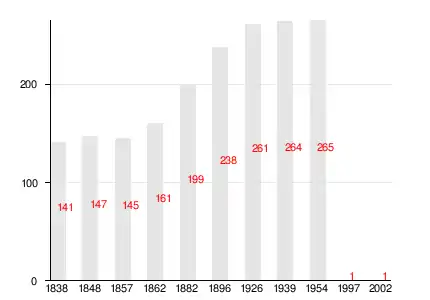 Изменение численности населения за период с 1838 по 2002 год: