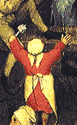 Девочка с дрейдлом в руке. Фрагмент картины Питера Брейгеля Старшего Детские игры (1560)