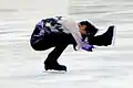 - Блинчик (англ. pancake spin) — конёк свободной ноги лежит на колене или бедре опорной, при этом позиции рук могут варьироваться, руки могут обхватывать опорный конёк, быть отведены в стороны или сомкнуты в замке за спиной.