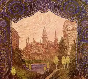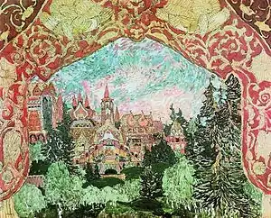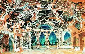 ![]() 1903 Эскиз декораций к балету А.Н. Корещенко "Волшебное зеркало". Золотой зал | |