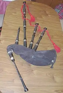Бэгпайп (англ. Bagpipe) — старинный шотландский инструмент. Представляет собой резервуар из шкуры овцы или козы, вывернутой наизнанку (goose), к которому прикрепляются (привязываются) три бурдонные трубки (англ. drones), одна трубка-чантер с восемью игровыми отверстиями (англ. chanter) и специальная короткая трубка для вдувания воздуха. Имеет упрощённую подачу воздуха (через поддувную трубку), что обеспечивает свободу правой руке.