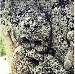 Величественные белокаменные артефакты представляют собой элементы классического барокко. Это не просто куски старицкого известняка. Артефакты, выступая в качестве уникальных единиц историко-культурного наследия, позволяют нам судить о трехмерном мировоззрении тверичей того времени. Памятник в виде жертвенного камня позади высокой стелы можно разбить на несколько частей: в ногах – голова Адама (как символ грехопадения), по бокам – жизнеописание человеческого пути, а в западной части – голгофский крест со словами эпитафии.