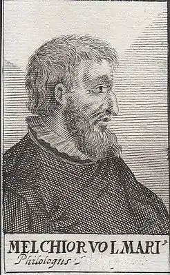 - Вольмар или Волькмар, Мельхиор // Энциклопедический словарь Брокгауза и Ефрона : в 86 т. (82 т. и 4 доп.). — СПб., 1890—1907.