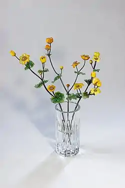 Станислав Вольский "Калужница" (нефит, янтарь, хрусталь, серебро, золото), 27х17х15 см, 2000. Фотограф Богдана Шкинь