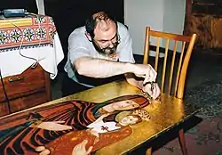 Станислав Вольский монтирует короны на Теребовлянской иконе
