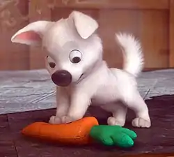 Образ Вольта был представлен двумя разными компьютерными моделями — маленьким щенком в начале фильма, и пятилетним псом в последующих эпизодах. Несмотря на то, что основа персонажа была одинаковой, щенок имел изменённые пропорции и иной стиль движений, присущих собакам в раннем детстве.