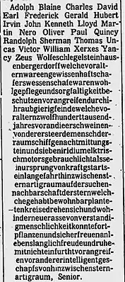 Адольф Блейн Чарльз Дэвид Эрл Фредерик Геральд Хьюберт Ирвин Джон Кеннет Ллойд Мартин Неро Оливер Пол Куинси Рэндальф Шерман Томас Ункас Виктор Уильям Ксеркс Янси Зевс Вольфшлегельштайнхаузенбергедорф… -старший