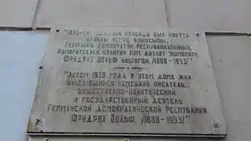 Мемориальная доска Фридриху Вольфу установлена в Одессе на д. 42 по улице Пастера.