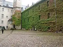 С трёх углов комплекса находятся три крупные башни. К ним примыкают изнутри лестничные башни, с помощью которых и можно попадать с этажа на этаж. Самая высокая из оборонительных башен достигает высоты около 30 метров и называется Hausmannsturm. Другие башни пониже и называются Uhlenturm и Wendelstein (шестиугольная). Все эти объекты были построены в XVI веке при масштабной реконструкции замка.
