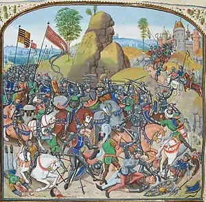 Битва при Монтьеле — миниатюра из «Хроник» Жана Фруассара (XV век)